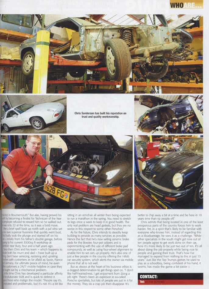 Chris Sandersons' reputation is well deserved, quality workmanship with care and attention to detail alongside a depth of porsche specific knowledge and courteous service has added up to complete peace of mind for myself as a customer. In particular Chris's knowledge and experience working with the 928 is comprehensive and marks him out as one of the few who truly know this car. Chris is the person I chose to entrust with the rebuild of a GTS engine and my track car project and i can confirm he knows these engines and cars completely.